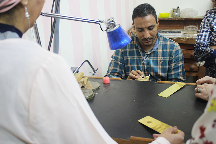 The art of metal ornaments is one of the leading disciplines in Egypt and the Middle East. This specialization is aimed at developing the design of metal pieces by means of more than one technique and the most important technique of unloading by publishing. This is done on the yellow and red copper, and this technique can be applied to all metals used in jewelry such as gold and silver .